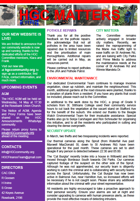 April 2025 – Newsletter